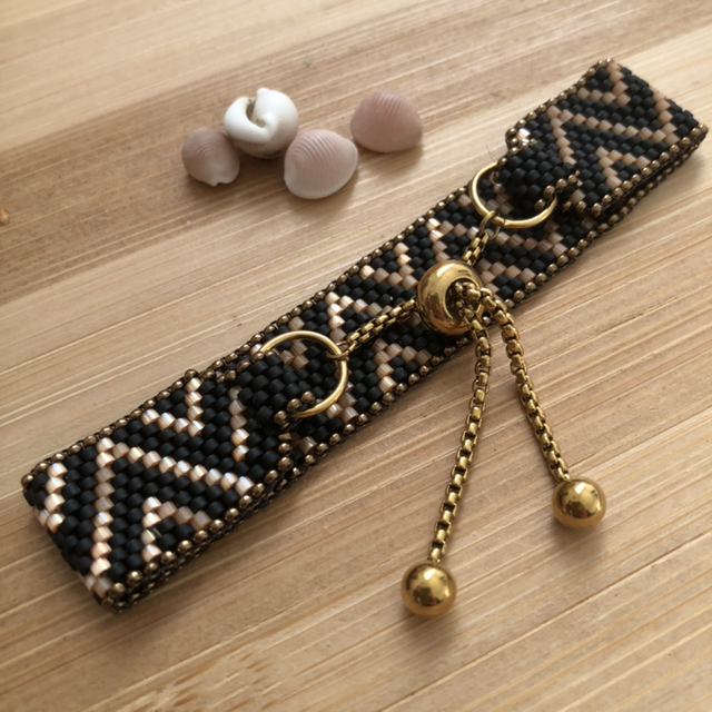 Bracelet tissé en perles japonaises Miyuki, fermoir chainette réglable en acier inoxydable.