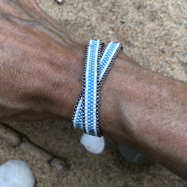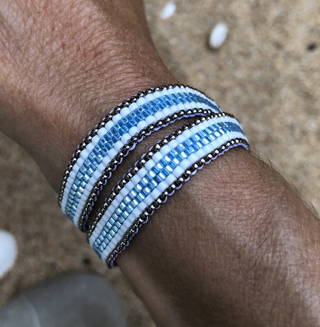 Bracelet serpentin qui se porte « à double tour », tissé en perles japonaises #miyuki, fermoir et anneaux en acier inoxydable.