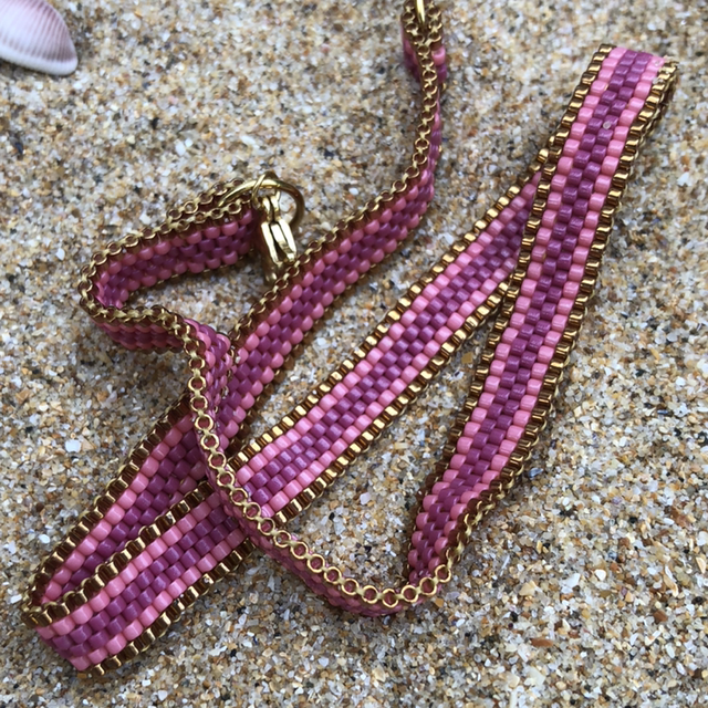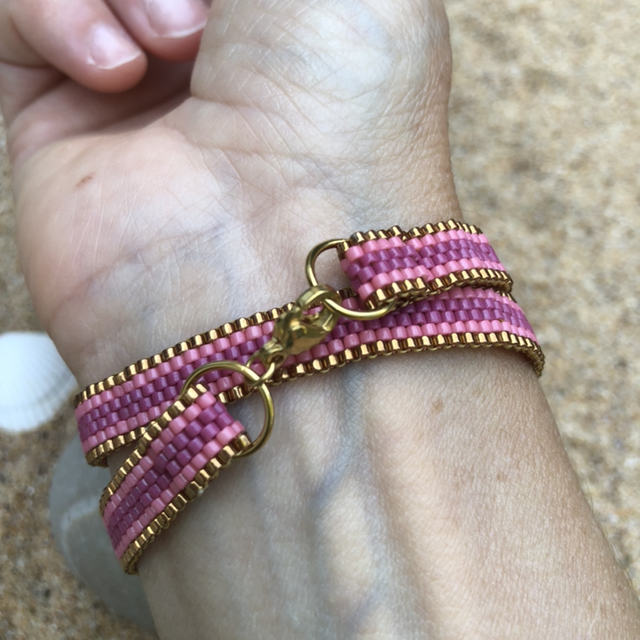 Bracelet serpentin qui se porte « à double tour », tissé en perles japonaises #miyuki, fermoir et anneaux en acier inoxydable.
