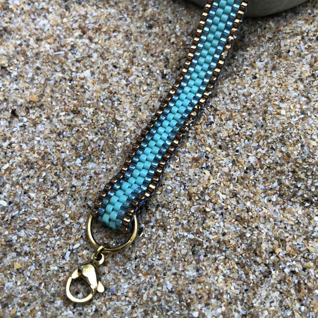 Bracelet serpentin qui se porte « à double tour », tissé en perles japonaises #miyuki, fermoir et anneaux en acier inoxydable.