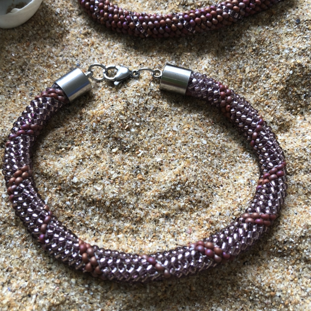 Bracelet de perles tissé en spirale à l’aiguille, fermoir en acier inoxydable.